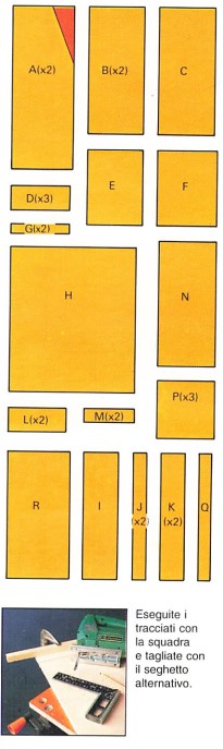 Il triangolo rettangolo ricavato dai pannelli laterali A ha i lati di 160 x 450 mm. Eseguite tutti i tagli con il seghetto alternativo o con la sega circolare. Levigate subito i bordi con la carta vetrata per prepararli a ricevere i profili.
