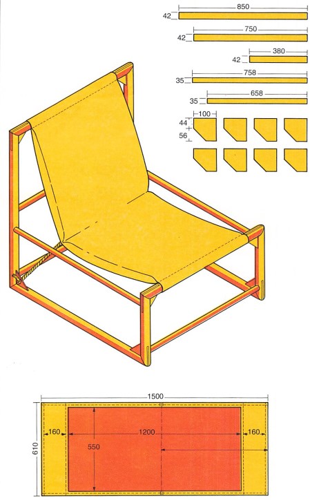 Dei lunghi tondini di legno, della gommapiuma ricoperta con una fodera, ecco come realizzare una poltroncina che si adatterà perfettamente ad un ambiente moderno.