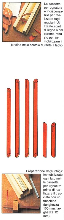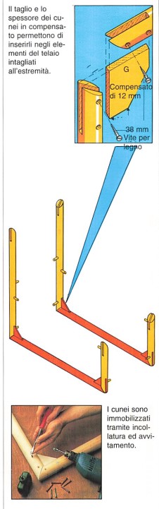 Infine anche gli intagli potrebbero essere difficili da realizzare: essi devono infatti permettere di alloggiare il cuneo di compensato con un gioco minimo, anche se saranno poi immobilizzati tramite avvitamento.