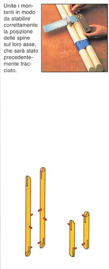 La realizzazione dei tori, il cui scopo è quello di accogliere le spine di assemblaggio delle traverse con i telai, richiede un notevole rigore di esecuzione. Una sagoma vi sarà utile per realizzare i fori con precisione nell’asse dei tondini.