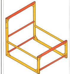 I telai portanti sono realizzati con un tondino di 42 mm di diametro. Gli assemblaggi ad ugnatura sono rinforzati mediante cunei ricavati da un foglio di compensato con uno spessore di 12 mm. Le traverse, realizzate con un